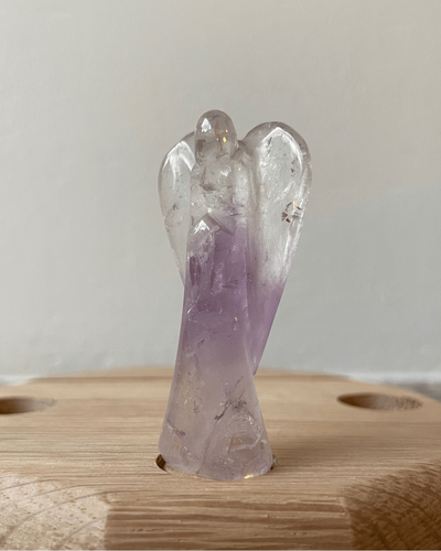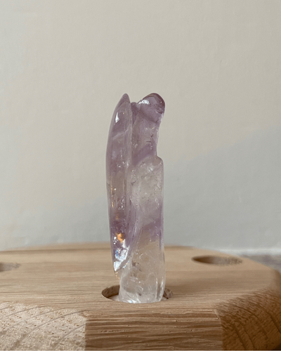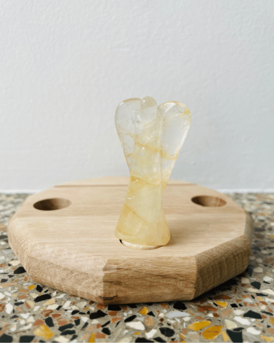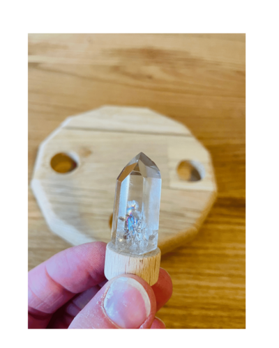 De kristallen zijn unieke stukken die met aandacht intuïtief geselecteerd zijn om er prachtige stekers van te maken voor op een jaartafel. Begin met het eikenhouten "Lichtpuntje" en voeg dingen toe zoals een messing kaarsenhouder met kaarsje, een vaasje en dan de kristallen-stekers.